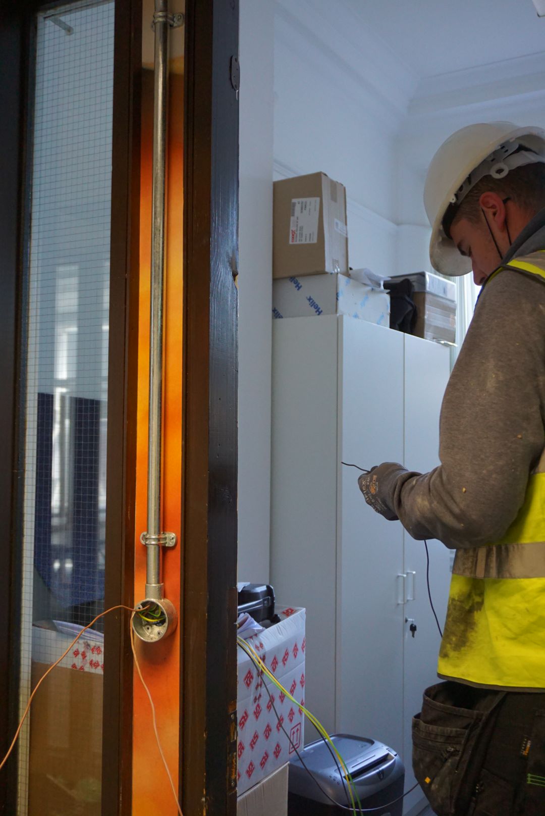 The McKeon Group team is currently appointed to carry out significant fire remediation works across a number of buildings that make up the NCAD campus. Project works consist of new and replacement electrical and minor mechanical works; lift installation; firestopping works; works to internal and external doors, windows, rooflights and ancillary works – images below. As of May 2021, the on-site team is working on the first fixings of the electrical works and expect to commence second fixings shortly.